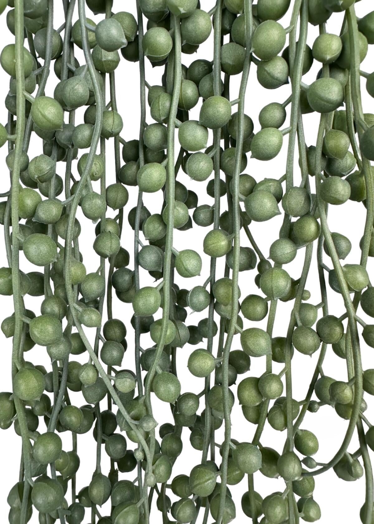 This senecia hanging string of pearls plant is made from hard plastic. They have lifelike shape pearls. A best selling item.